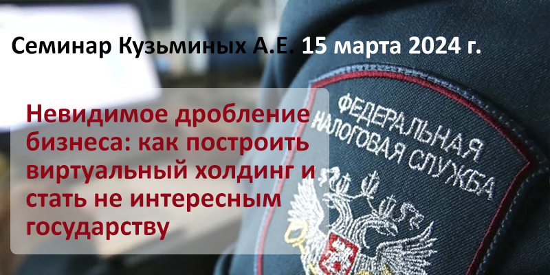 Что же делать? Нужно быть реальным бизнесом, а не казаться. Не защищаться в ходе проверки или уже в суде «гениальными» аргументами и легендами от обвинений в «извлечении необоснованной налоговой выгоды» и «искажении сведений о фактах хозяйственной жизни» — а предотвращать вопросы и вообще интерес налоговиков к своему бизнесу, избежав даже попадания на предпроверочный анализ, не говоря про собственно проверки. Не потому, что у них нет возможности найти схему, а потому, что мы им не интересны, сложно будет её выявить и доказать, явных признаков дробления мало, связи между участниками лишь косвенные и их немного… И вообще всё похоже на реальный бизнес — тот же франчайзинг, например. Объяснять же что-то — значит оправдываться и защищаться. А ведь сейчас в налоговой сфере тот, кто оправдывается — уже виноват. Так что задача — стать не интересными для налоговиков. Как этого добиться — будем разбираться на семинаре Кузьминых Артема Евгеньевича 15 марта! Учиться можно очно и онлайн! |
