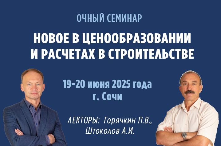 | Дорогие коллеги! 19-20 июня 2025 г. мы приглашаем Вас на семинар Горячкина Павла Владимировича и Штоколова Александра Ивановича «НОВОЕ В ЦЕНООБРАЗОВАНИИ И РАСЧЕТАХ В СТРОИТЕЛЬСТВЕ - 2025»! Пройдите обучение у лучших экспертов на берегу Черного моря, получите удостоверение о повышении квалификации 16 часов и профессиональные сертификаты! |